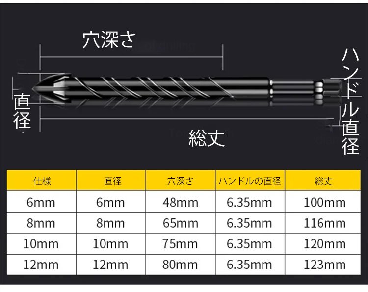 タングステン鋼製ユニバーサルドリルビット